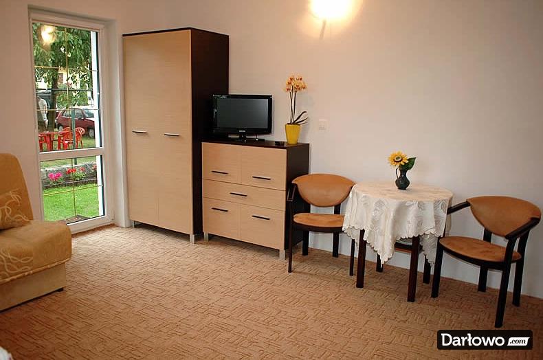 Do Państwa dyspozycji mamy 10 nowocześnie wyposażonych pokoi 2-, 3-, 4-, 5- osobowych oraz rodzinne apartamenty. Każdy pokój posiada własną łazienkę, TV-LCD, lodówkę, czajnik, sprzęt plażowy (parasol, parawan, leżak, mata plażowa). Nasi Goście mogą nieodpłatnie korzystać z internetu bezprzewodowego (wi-fi).
